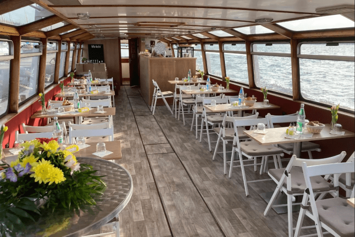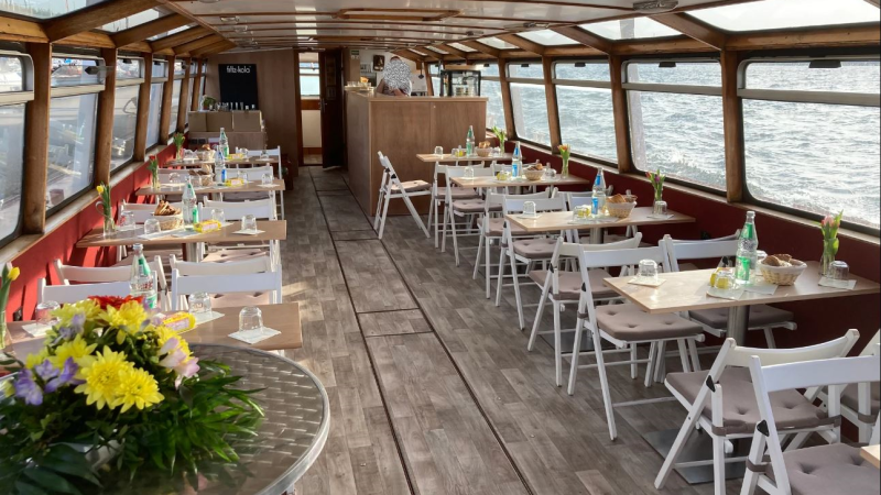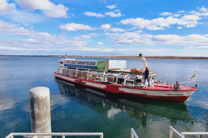 Erlebt eine entspannte Linienfahrt auf dem Cospudener See mit frischen Snacks und Getränken
