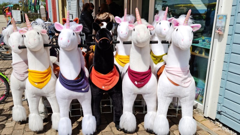 Reittiere kannst du bei uns in drei Größen mieten: Für Kinder ab 3 Jahren (klein), ab 6 Jahren(mittel) und große Kinder(groß) und Erwachsene bis max 80 kg. Bei uns warten Einhörner, Pferde, Zebras, Tiger, Esel und eine Giraffe darauf, an der Seepromenade zu flanieren.