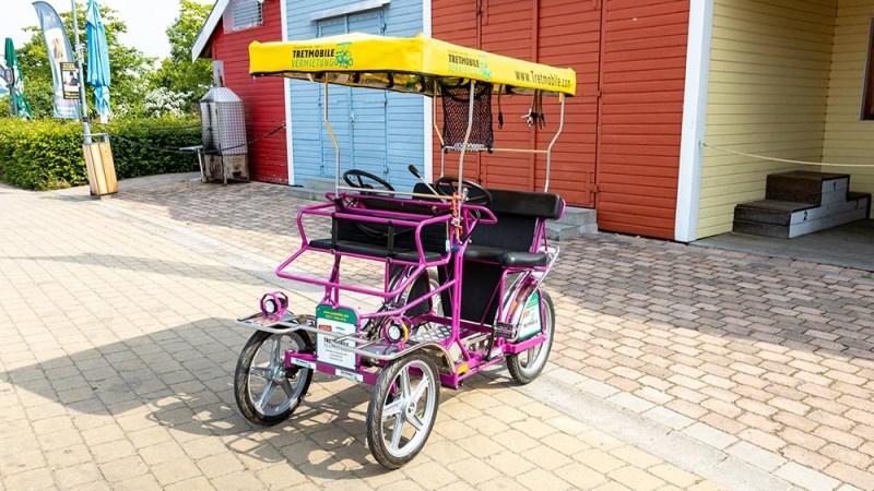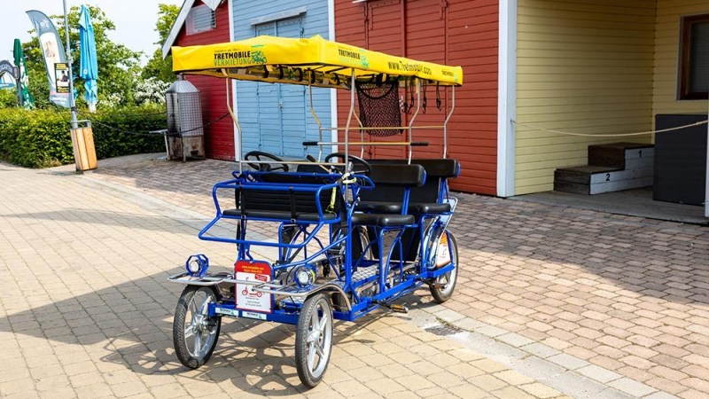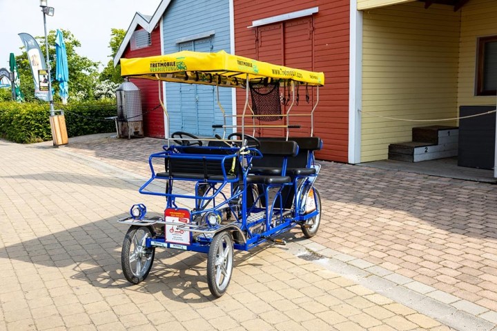 Ob du unsere Gefährte Tretmobil, Rikscha oder Rosalie nennst, bleibt dir überlassen. In jedem Fall wirst du eine Menge Spaß beim Fahren um den Cospudener See haben.